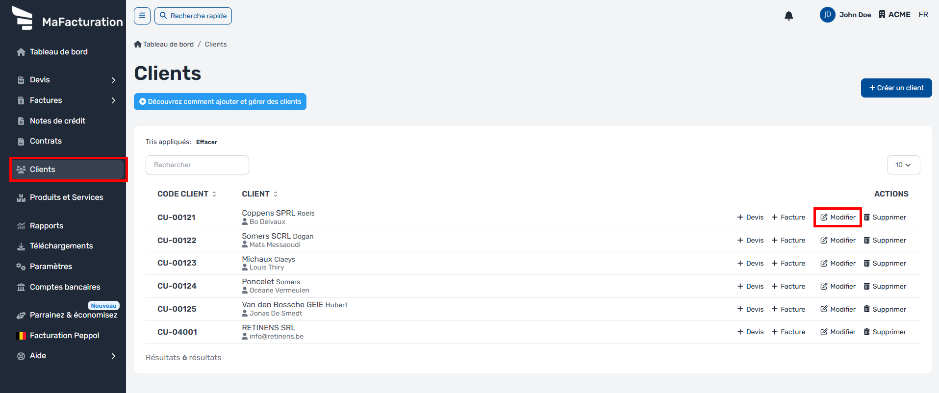 Modifier un client