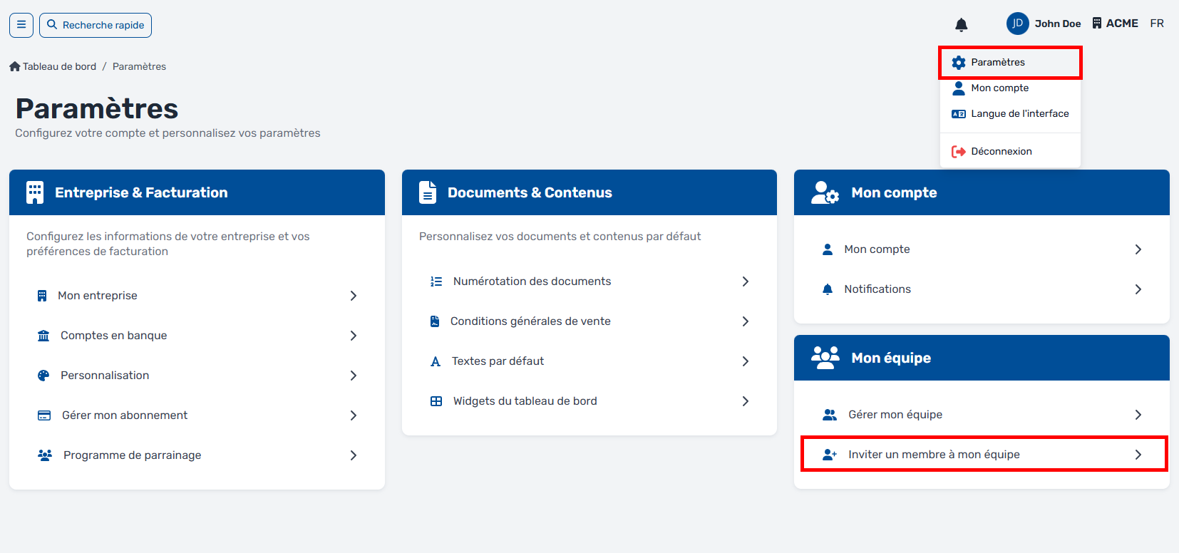 Note importante : La gestion d'équipe est disponible dans l'offre MaFacturation Pro.