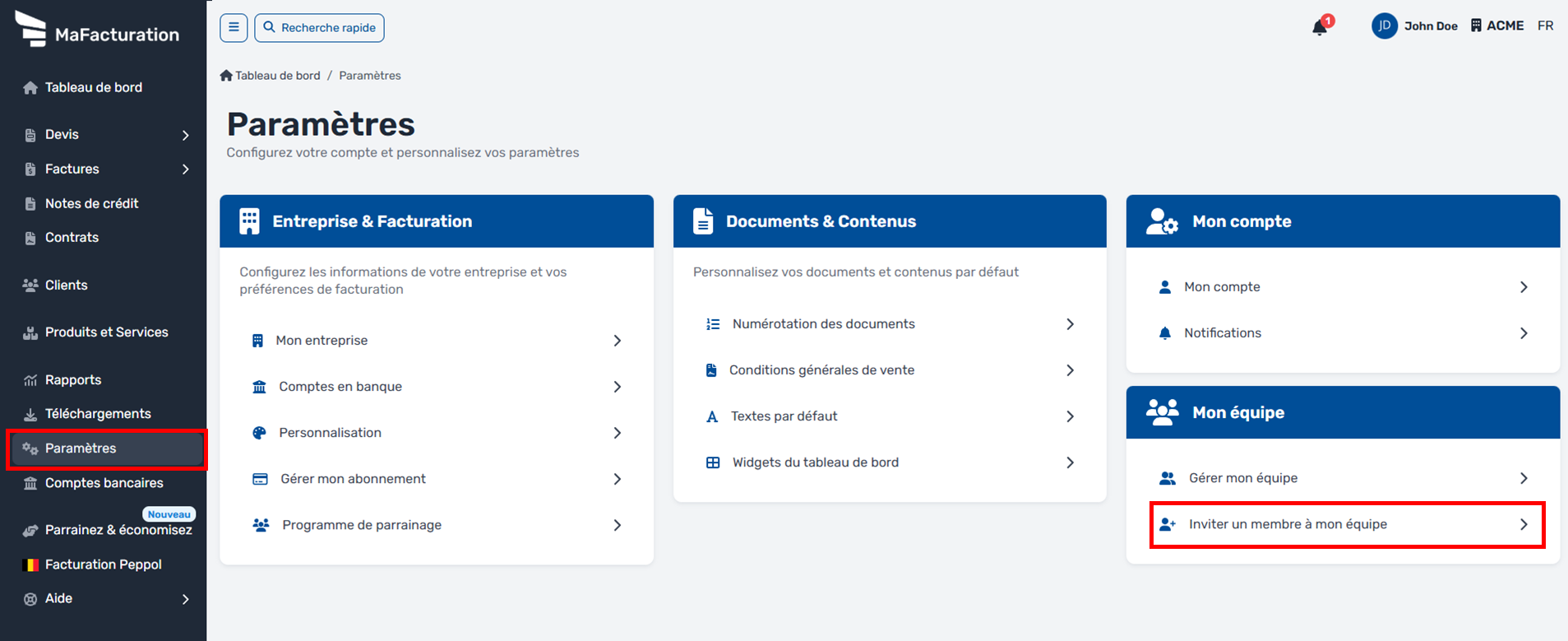 Inviter un membre à mon équipe