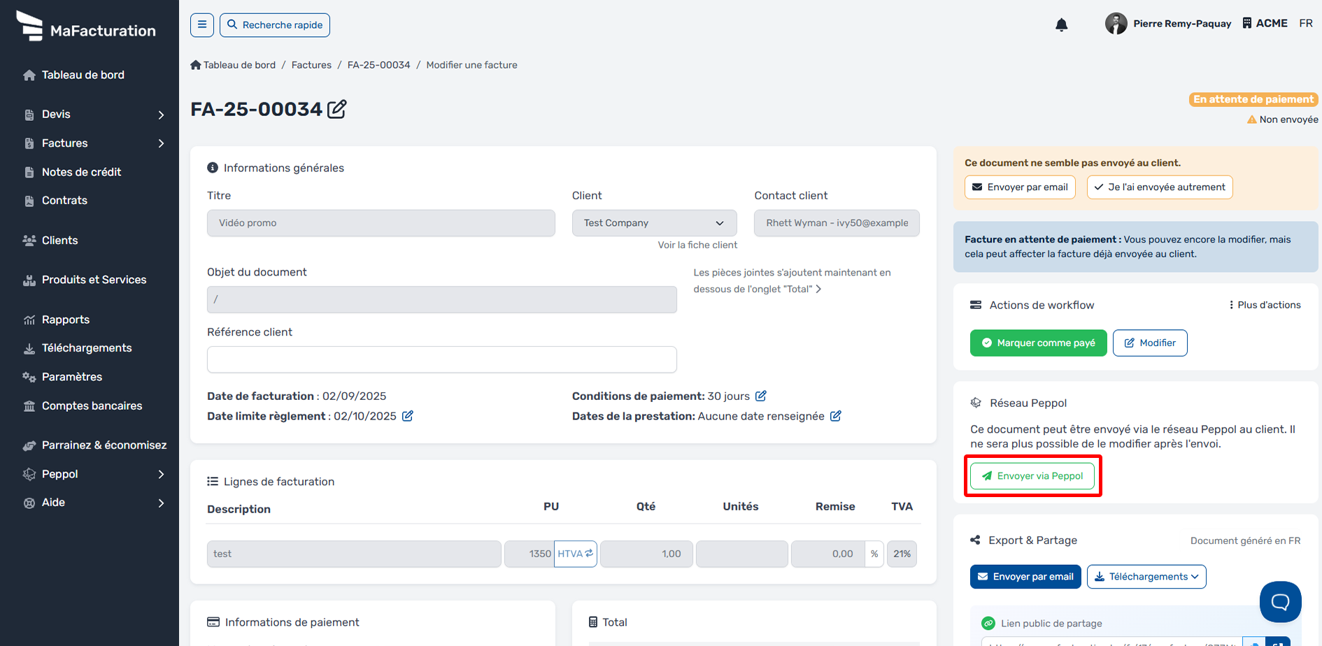 Envoyer une facture via Peppol