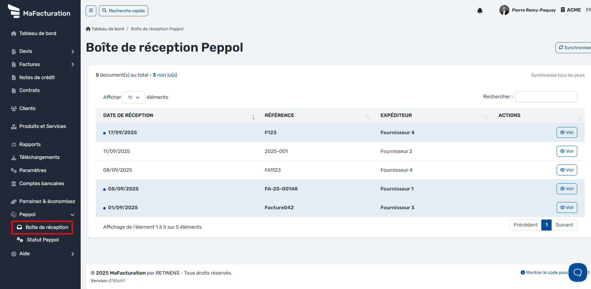 - Rendez-vous dans l’onglet Peppol de votre boîte de réception.